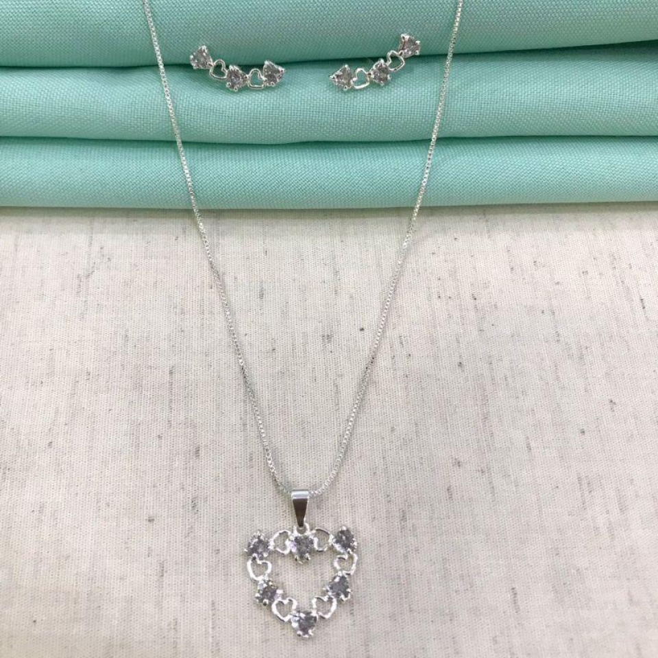 CONJUNTO WINE ZIRCÔNIA BANHADO A PRATA...