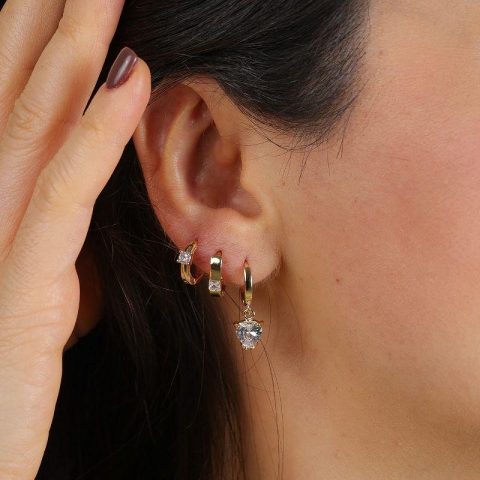 TRIO DE CORAÇÃO ZIRCÔNIA VERDE BANHADO A O...